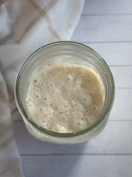 - To ensure a bubbly and active starter, feed your starter the night before baking.