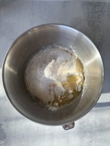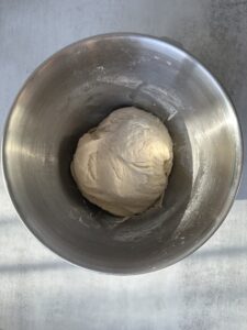 Add the flour, salt, and melted butter to your wet ingredients. Knead your dough by hand or with a mixer set on low for 7-8 minutes. Your dough should be smooth and elastic after kneading. Because this is a low hydration dough, it can be fairly stiff.