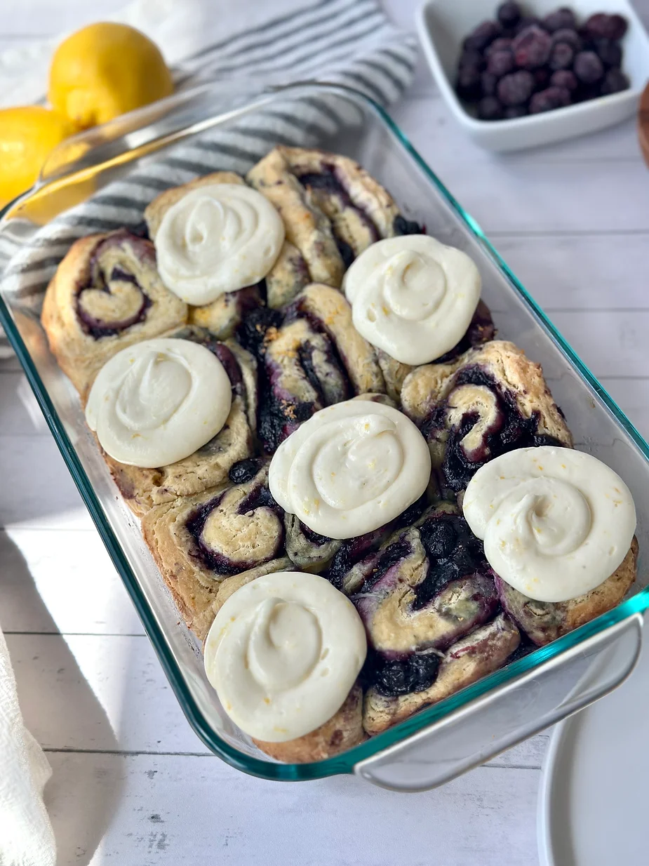 Bright, jammy, and irresistibly tender, these sourdough discard lemon blueberyy rolls bring together the tang of citrus, the burst of blueberries, and the comfort of a soft, buttery swirl—all finished with a silky lemon cream cheese glaze.