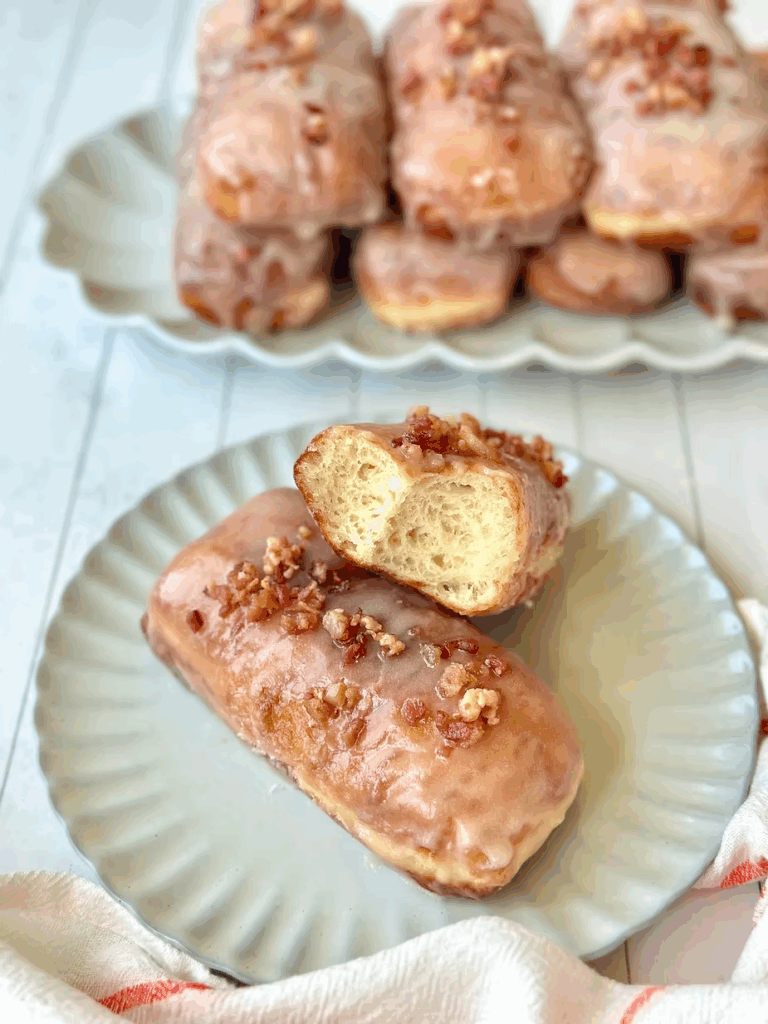 These Sourdough Maple Bacon Bars are everything you didn’t know you were missing: pillowy soft, glazed with a buttery thick maple glaze, and finished with crispy bacon crumbles on top. One bite of these melt-in-your-mouth donuts, and you’ll be transported back to that small donut shop from your childhood!