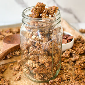 If you love granola with those big, crunchy clusters instead of a pan full of crumbs, this one’s for you. I spent a lot of time tweaking this Sourdough Maple Pecan Granola to get the perfect balance of crisp, golden clusters that actually hold together. Letting it rest overnight with sourdough discard and Greek yogurt helps bread down the phytates in the oats, making them easier to digest. It bakes up with rich maple flavor, toasty pecans, with the kind of crunch you’ll keep reaching back for.