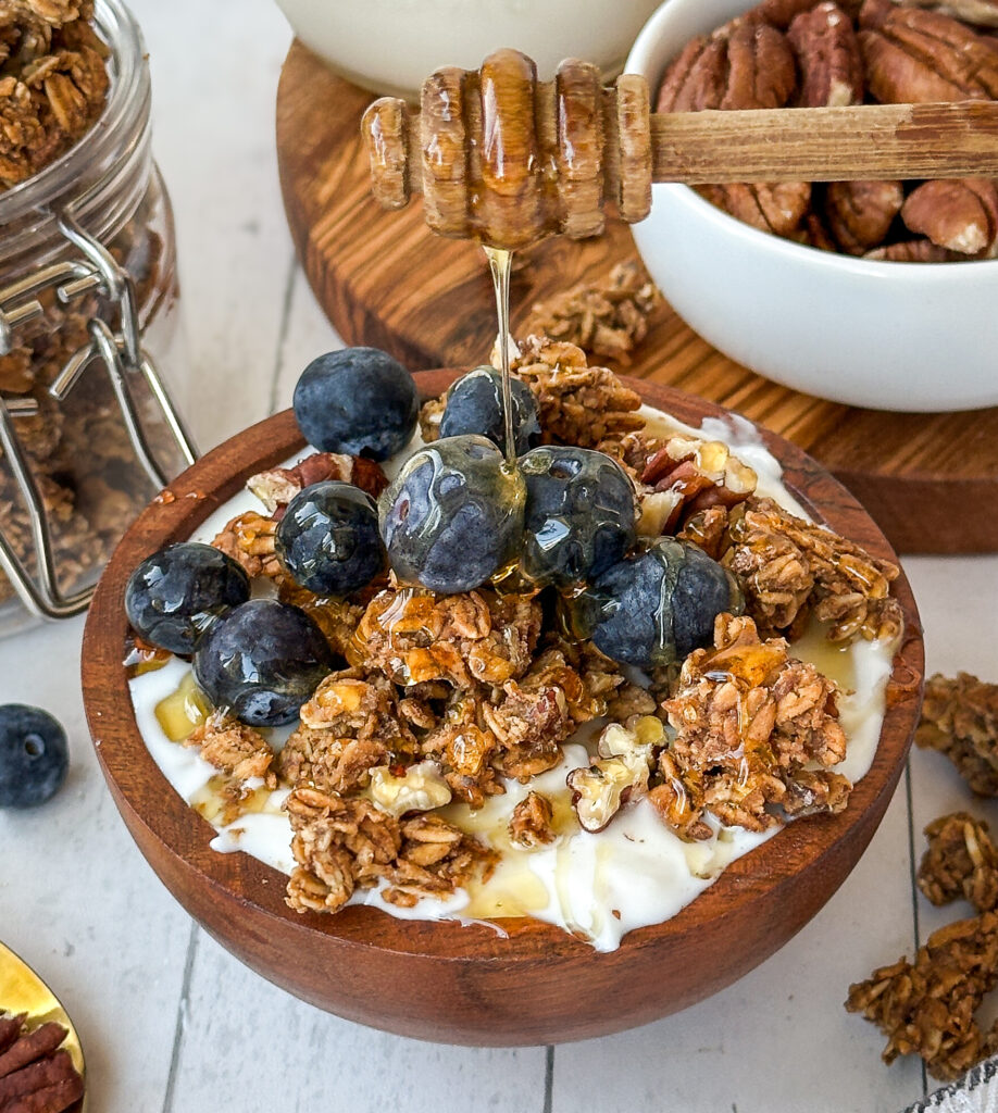 - Honey- This adds a touch more sweetness and helps the granola cluster together.
