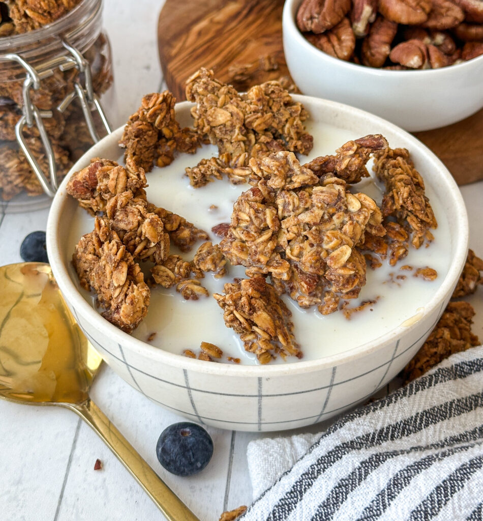 - Rich maple flavor: lightly sweet with maple and honey, paired with toasted pecans for that perfect cozy crunch.