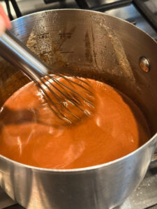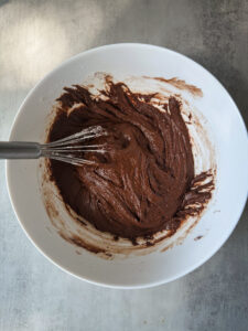 Return the pot with the 1/2 cup (115g) of browned butter to the stove and on low heat, add the chocolate chips, cocoa powder, and espresso powder to the pot. Whisk on low heat until the chocolate has just fully melted and all of the ingredients are fully incorporated.