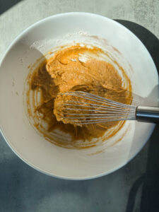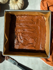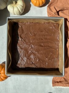- Set aside the brownie batter while you mix your pumpkin blondie base.